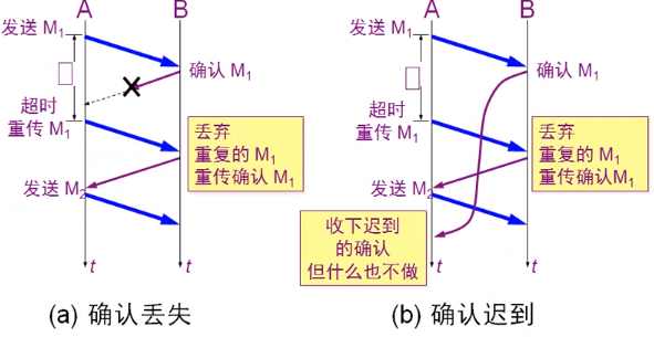 确认迟到:接收端收到数据后发送的确认包迟到(超出等待时间)