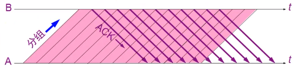 发送方 连续发送多个分组,不必每次发完一个分组就停下来等待对方确认,由于信道上一直有数据不间断的传送,这种方式获得很高的信道利用率
