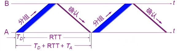 等待时间=分组时间(TD) + 往返时间(RTT) + 接收确认包时间(TA)