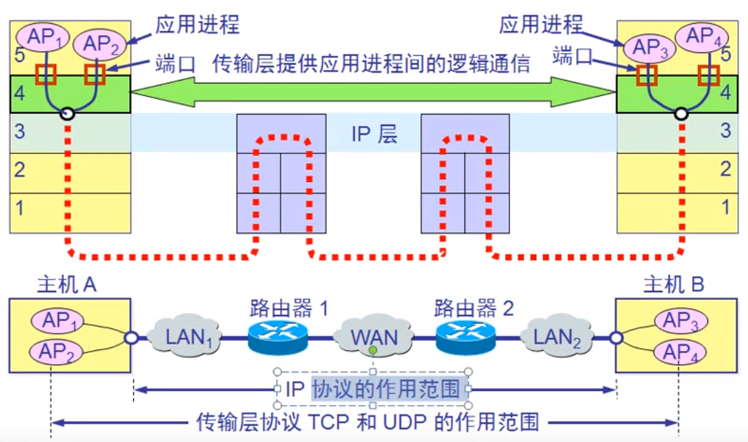 - 传输层提供进程之间的逻辑通信