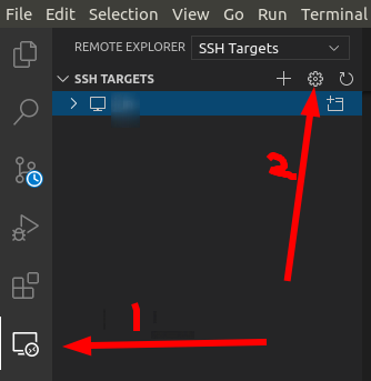 1. 首先点侧边栏的「远程资源管理器」之后点击「设置按钮」,进入远程机器配置界面。