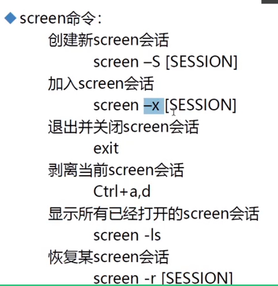 | # 1. 终端断网 screen screen -ls # 显示所有会话 screen -r [session] # 恢复会话