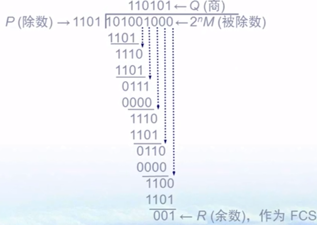 假设带待传送的一组数据 M=101001(现在k=6)。我们在M的后面再添加供差错检测用的 n 位 冗余码一起发送。